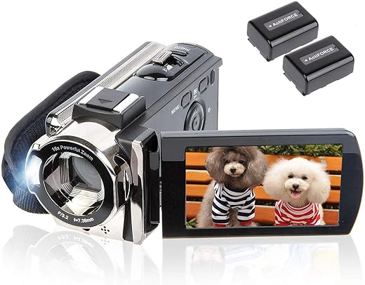 Câmera de vídeo filmadora digital Full HD 1080p 15fps 24MP 3,0 polegadas rotação de 270 graus LCD 16x Zoom Filmadora com 2 baterias (604s)